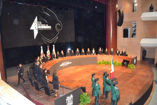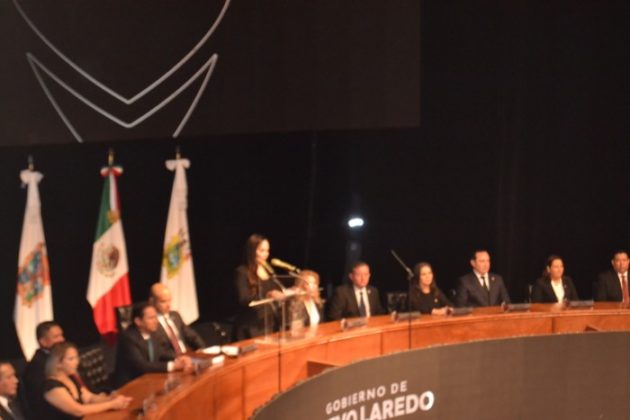 Nuevo Laredo, Tamaulipas.-En un informe detallado de media hora, posterior a un video de 37 minutos, la alcaldesa de esta ciudad, Carmen Lilia Canturosas ofreció su primer informe de gobierno en un Centro Cultural completamente lleno, adonde acudieron autoridades civiles, religiosas y militares para escuchar los pormenores del trabajo realizado en su primer año al frente de esta administración municipal.