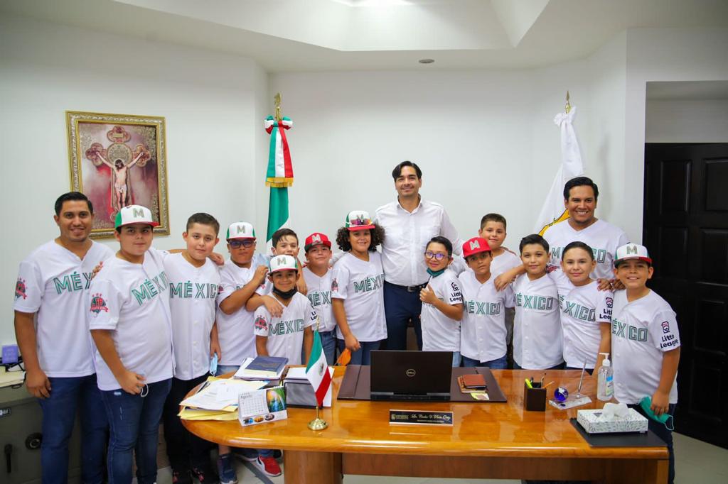 Luego de su participación en la Serie Latinoamericana de Ligas Pequeñas, los pequeños beisbolistas de la José Guadalupe Treviño Kelly categoría 9 y 10 años, fueron recibidos por el Presidente Municipal Carlos Peña Ortiz, en su retorno a Reynosa.