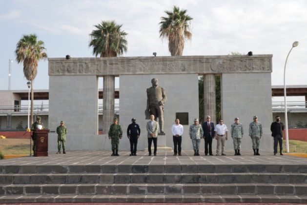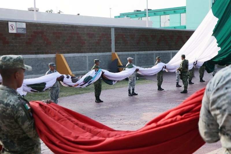 En este lugar el general Jorge González, comandante de la Guarnición Militar, dijo que “este lábaro patrio fue confeccionado por personal militar y pertenece a las banderas monumentales que ondean en México. Qué mejor manera de reactivar estas ceremonias que en septiembre, donde se ronda fechas importantes como la Independencia de nuestra nación”.