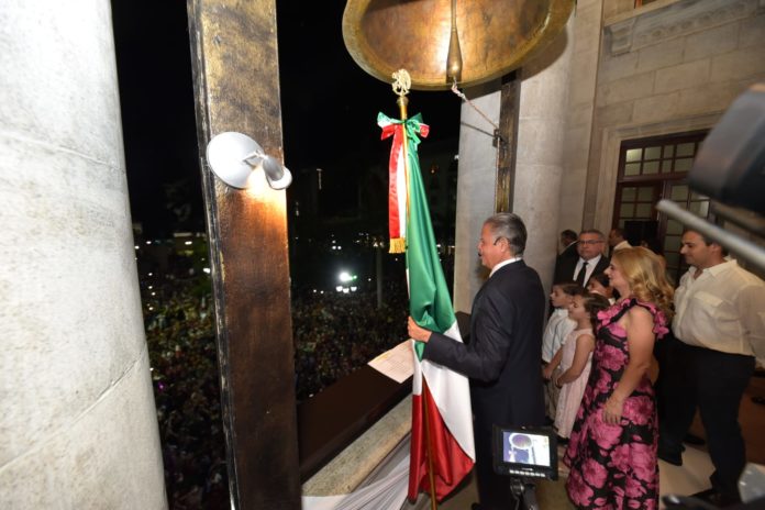 Tampico, Tamaulipas.-Más de 10 mil personas acudieron al grito de independencia en esta ciudad este 15 de septiembre, que se reanudó de manera presencial despuès de dos años de pandemia del COVID-19, en donde se garantizó la seguridad y se reportó saldo blanco.