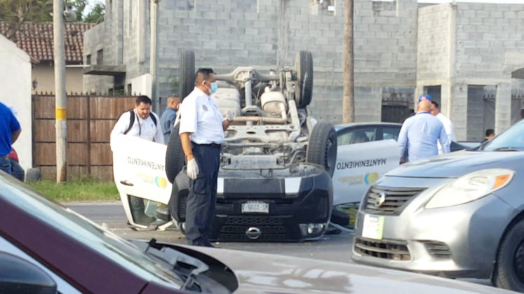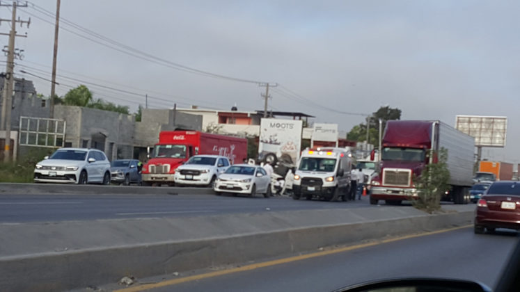 Reynosa, Tamaulipas.-Aparatoso accidente vial se registró en una concurrida carretera, donde una unidad se proyectaron varias unidades y una de ellas se volcara, y que dejaran cuantiosos daños materiales, así como dos personas lesionadas.