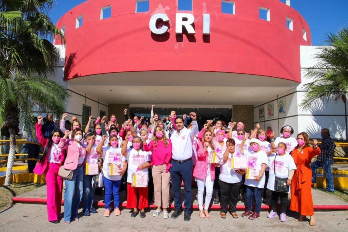 El Alcalde Carlos Peña Ortiz, presidió, este miércoles 19 de octubre, el evento conmemorativo de la Lucha contra el Cáncer de Mama, “Entrega de Prótesis Mamarias Externas 2022”, acompañado por la Directora del Sistema DIF-Reynosa, Oralia Cantú Cantú, en las instalaciones del Centro de Rehabilitación Integral, CRI.