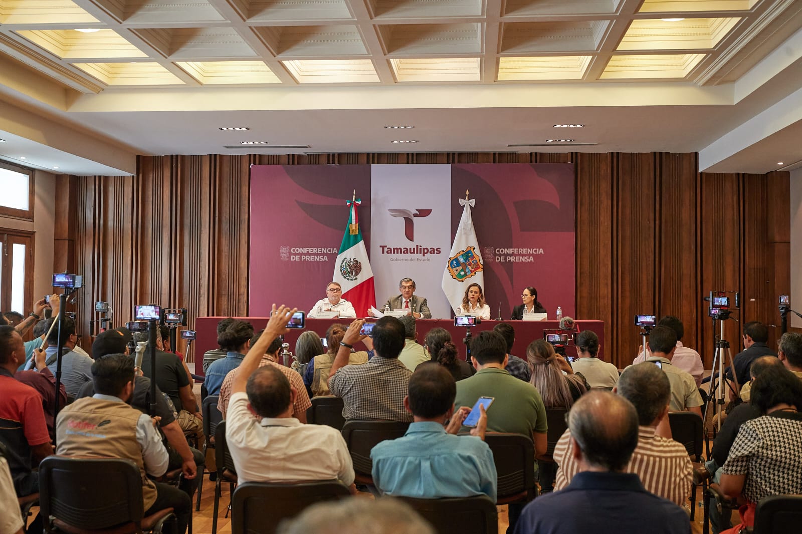 En conferencia de prensa, en el Salón Independencia del Palacio de Gobierno, el gobernador expuso detalladamente las 30 acciones y obras que se presentaron al presidente López Obrador en su reciente visita y en la que junto con su gabinete, dio le todo el respaldo al nuevo gobierno estatal de Tamaulipas.