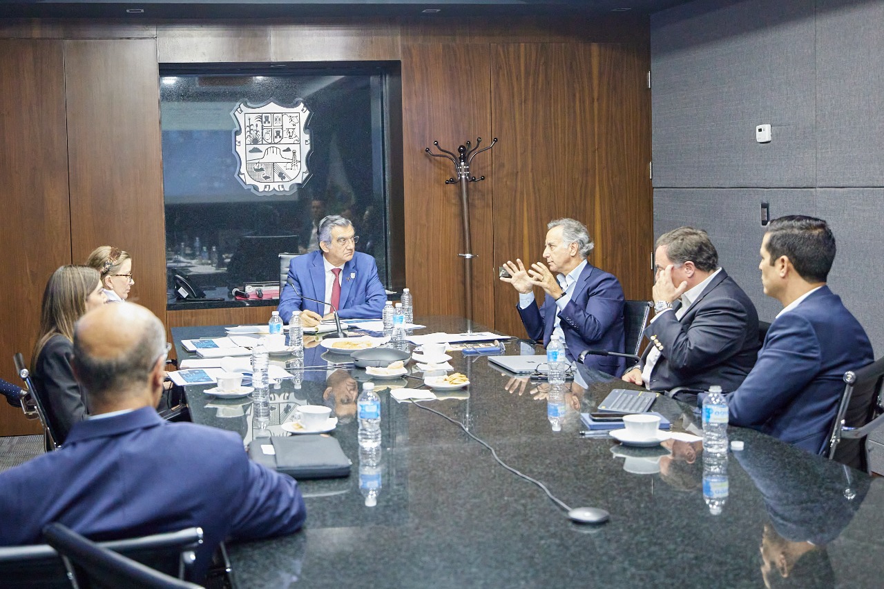 Al encuentro con el jefe del Ejecutivo Estatal también se dieron cita Javier Ugarte de la Rosa, Vicepresidente Técnico; Claudio Zambrano Garza, Vicepresidente de Nuevos Negocios y Ángel Zúñiga, Director de Nuevos Negocios.