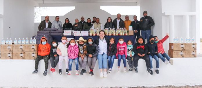 La Directora del Sistema DIF Reynosa, Oralia Cantú Cantú, en compañía de la Regidora, Patricia Ramírez, realizó la entrega de canasta básica, cobijas, zapatos y gel antibacterial.