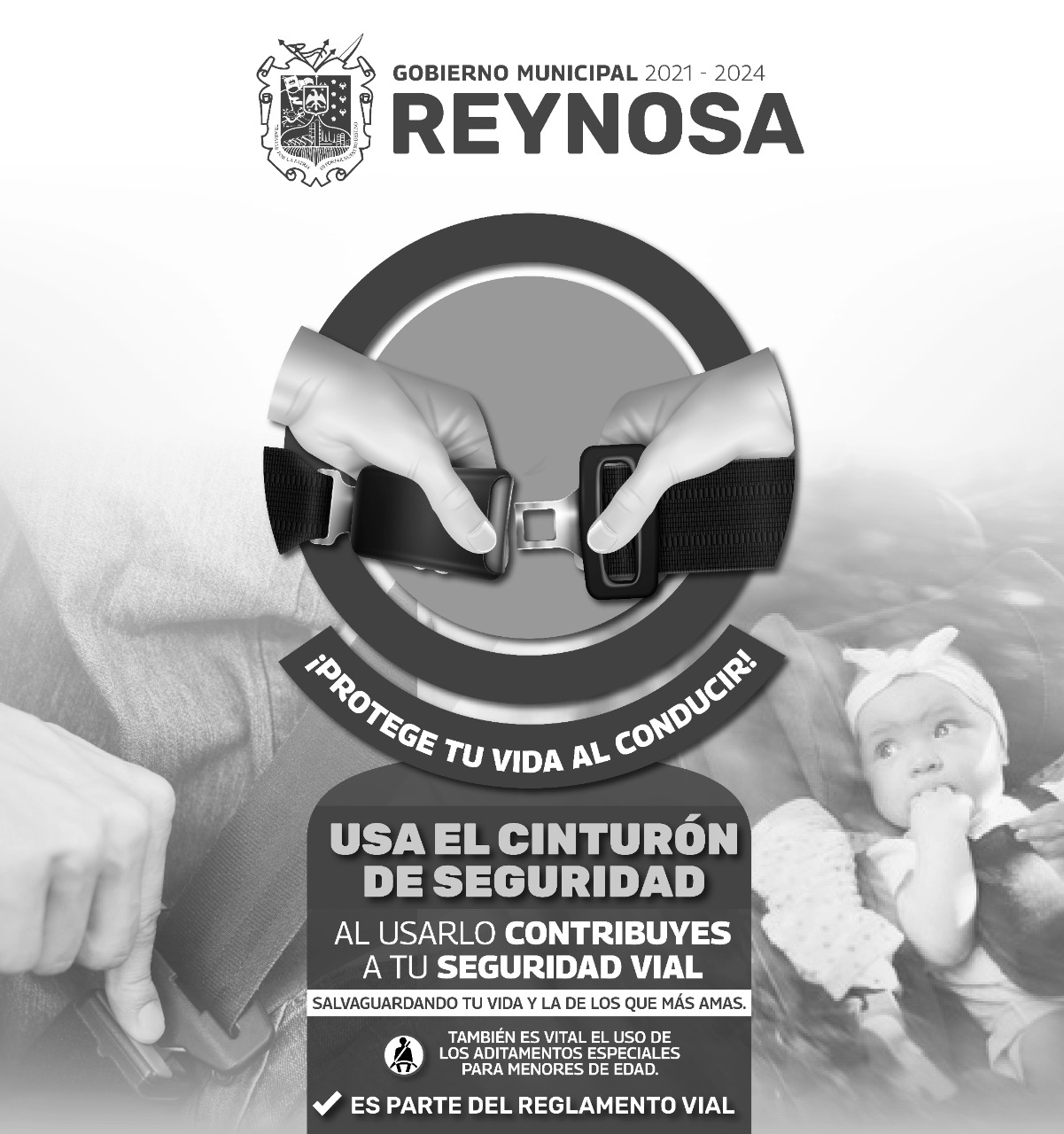 Para hacer conciencia sobre la seguridad al conducir un automóvil, el Gobierno Municipal de Reynosa invita a los conductores a utilizar el cinturón del automóvil, y prevenir daños personales en caso de un incidente de tráfico.