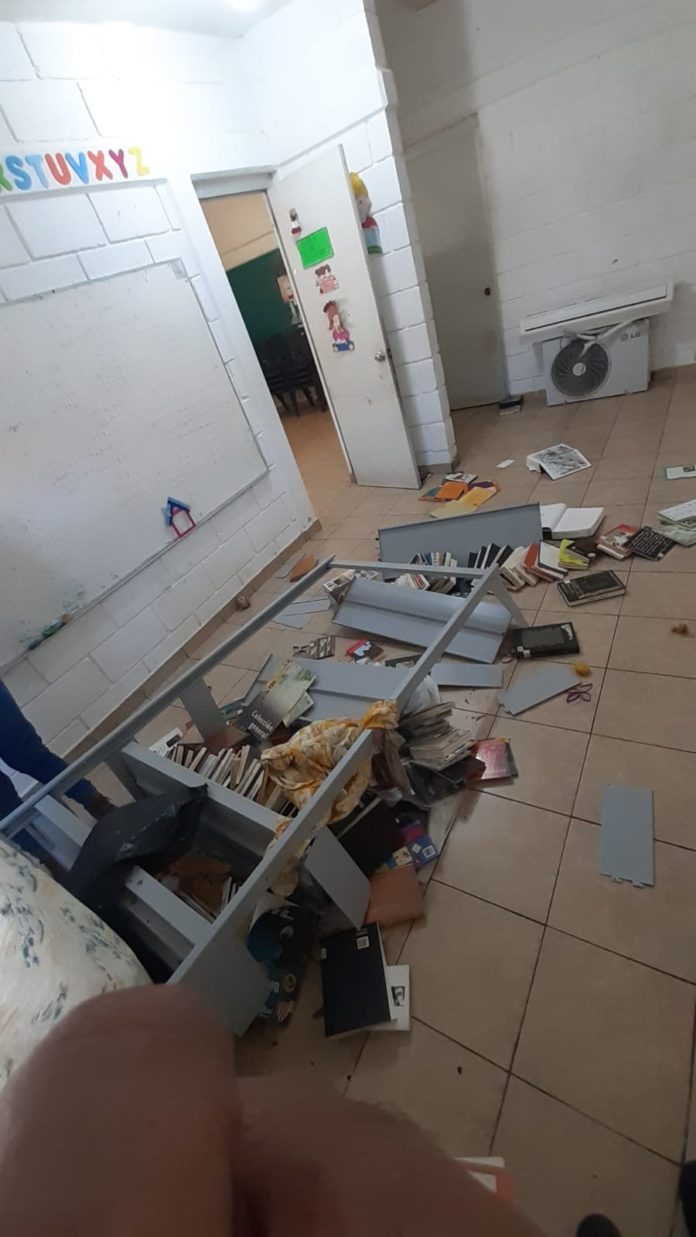 “Desgraciadamente otra vez, no puedo decir los amantes de lo ajeno, porque no se robaron nada, fue cuestión de vandalismo, nos tocó ahora en el tamul de la colonia Arenal, desgraciadamente se metieron y rompieron la ventana, hicieron desmanes adentro, no se robaron nada, pero tiraron todo, rayaron”.