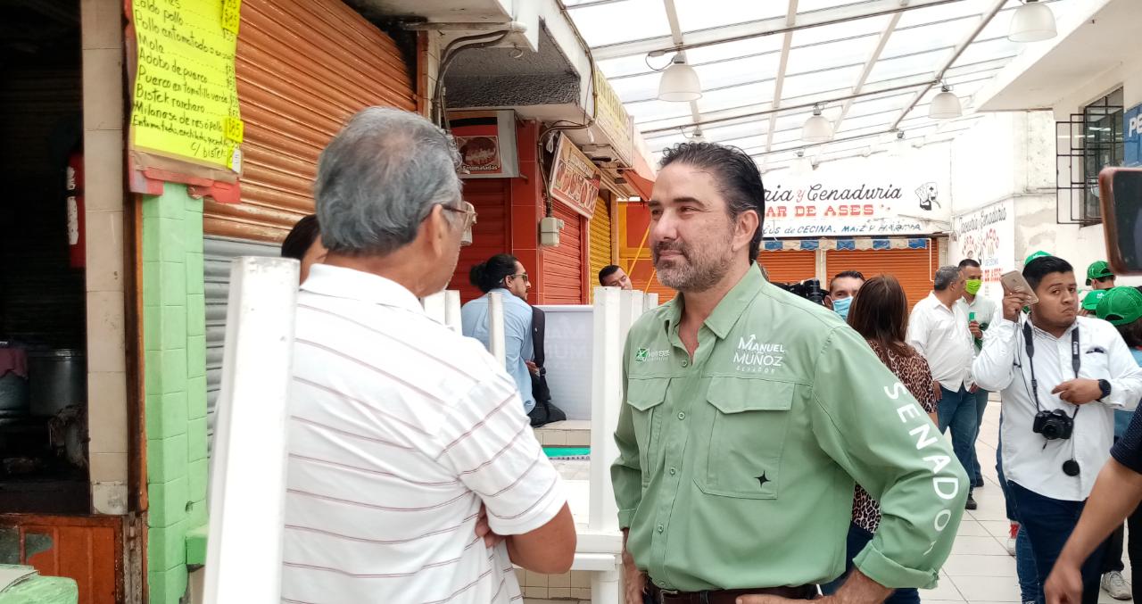 Madero, Tamaulipas.- Al realizar un recorrido por el mercado municipal de Ciudad Madero, el candidato al senado por el partido Verde, Manuel Muñoz Cano, dijo que al llegar a la cámara alta del congreso de la Unión, buscará que se instale La comisión de lo robado en Tamaulipas.
