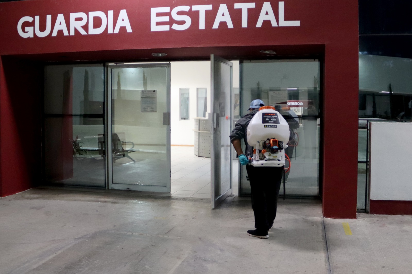 Cd. Victoria, Tamaulipas.-La Secretaría de Seguridad Pública de Tamaulipas (SSPT) realizó acciones de sanitización en los edificios que comprende el Complejo Estatal de Seguridad Pública, en Ciudad Victoria.