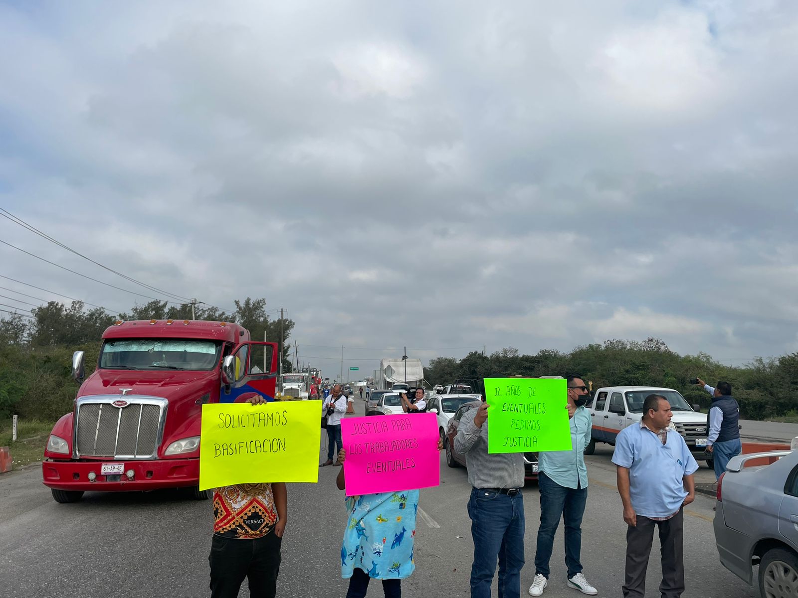 Altamira, Tamaulipas.-Trabajadores de la salud en Tamaulipas bloquearon la carretera Tampico Mante a la altura del puente roto de Altamira, quienes exigieron por enésima vez la basificación de 4500 empleados, mismos que desde hace 12 años no cuentan con un salario digno, algunos apenas reciben 2 mil 200 pesos por quincena.