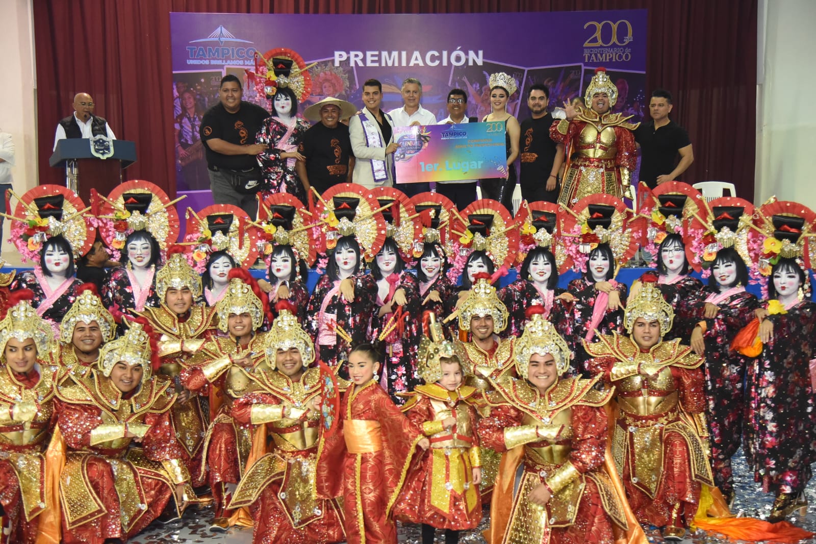 Tampico, Tamaulipas.-Una bolsa de premios en efectivo de un millón de pesos distribuyó el Presidente municipal Chucho Nader entre los ganadores del Carnaval del Bicentenario de Tampico 2023 durante la ceremonia de premiación efectuada en el Auditorio municipal en medio de un ambiente festivo en el que reinó la alegría y el entusiasmo de los participantes.