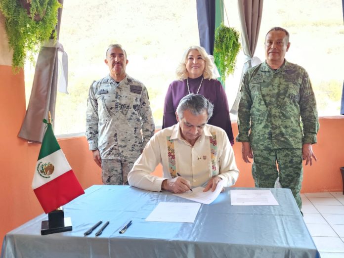 Durante la reunión celebrada este lunes en las instalaciones del 77 Batallón, el gobernador Américo Villarreal y funcionarios del gabinete signaron el acuerdo con el comandante de la IV Región Militar, general de brigada DEM Norberto Cortés Rodríguez; el general de brigada DEM, Adalberto Rojas Mira, coordinador estatal de la Guardia Nacional y general de brigada DEM, Elpidio Canales Rosas, comandante de la 48a. Zona Militar, con el propósito de mantener e incrementar la corresponsabilidad, la cooperación y la coordinación en el ejercicio de las atribuciones tanto del Gobierno de Tamaulipas, como de la Sedena.