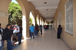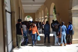 Nuevo Laredo, Tamaulipas.-Hasta seis horas haciendo fila, cientos de estudiantes del Cebeti’s 234 tuvieron que esperar para que empleados de la delegación del Banco del Bienestar Social los atendieran en unas oficinas ubicados en el Palacio Federal para el cobro de sus Becas del Bienestar, por un monto aproximado de mil 600 pesos.