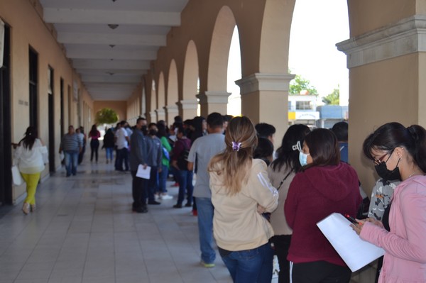 Araceli Ledesma, enlace de coordinación de becas ‘Benito Juárez’, informó que la enorme fila se debió a una convocatoria realzada a través del Banco de Bienestar a los estudiantes de dicho plantel de educación media, para que acudieran los días martes y miércoles de esta semana a solicitar su beca de apoyo para estudiantes.