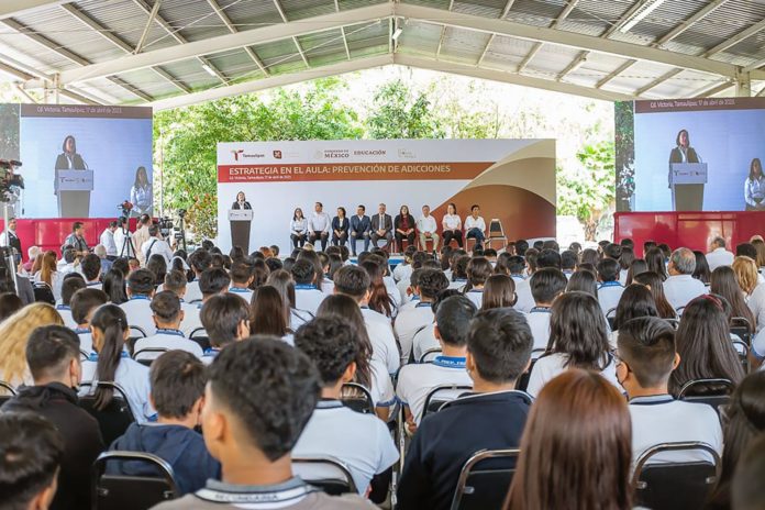 Ciudad Victoria, Tamaulipas.- Tamaulipas se suma a la Estrategia en el Aula: Prevención de Adicciones “Si te drogas, te dañas”, campaña a nivel nacional realizada por el Gobierno Federal, a través de la Secretaría de Educación en el Estado, la cual tiene como finalidad prevenir el consumo de drogas en las y los jóvenes estudiantes de educación secundaria y bachillerato.