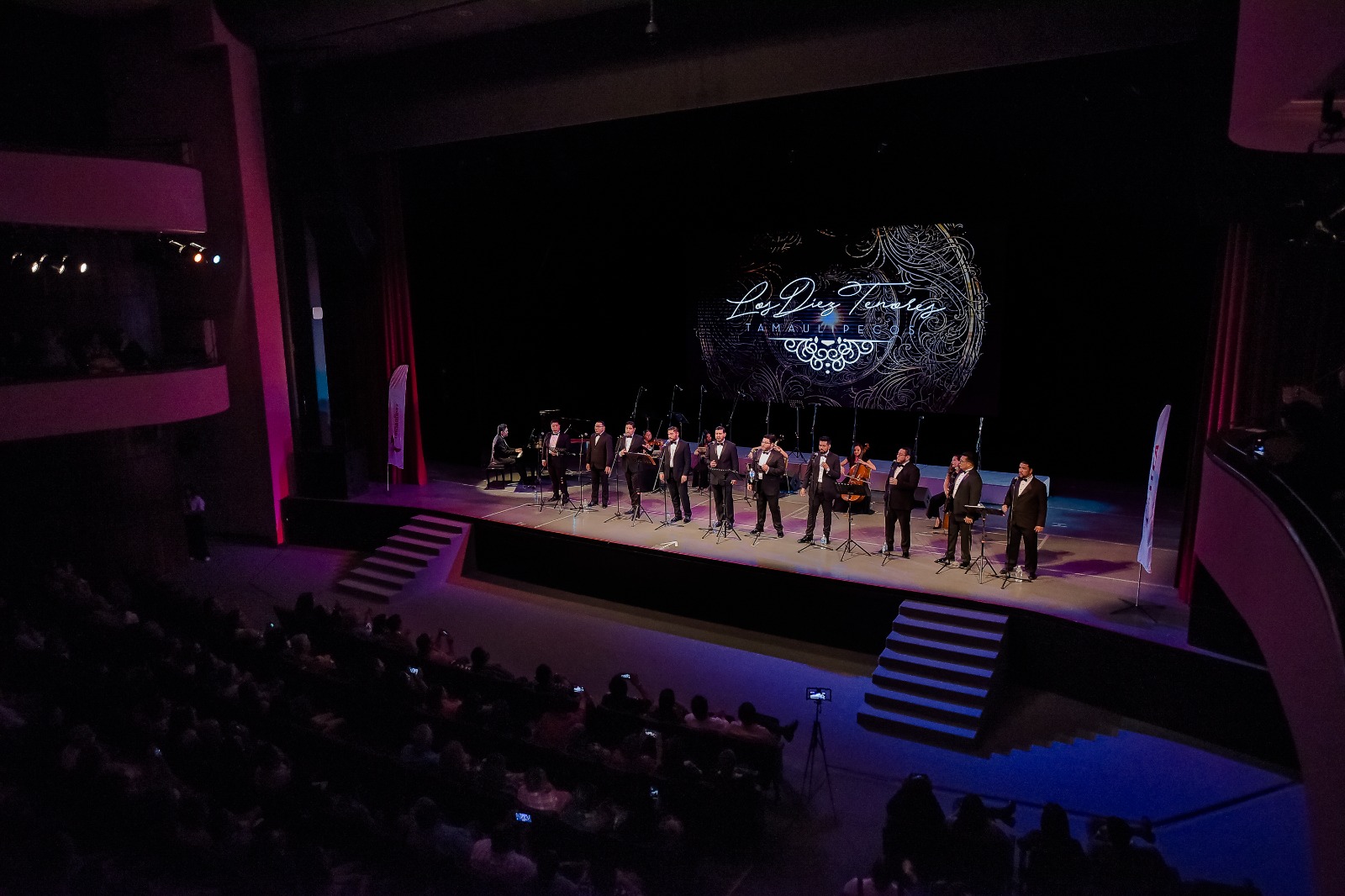 Ciudad Victoria, Tamaulipas.- Como parte de una gira de presentaciones en diversas ciudades de la entidad, Los Diez Tenores Tamaulipecos cantaron para el público victorense, durante un concierto ofrecido en el Teatro Amalia G. de Castillo Ledón, organizado por el Instituto Tamaulipeco para la Cultura y las Artes, en el que deleitaron a los asistentes con sus privilegiadas voces, interpretando desde canciones napolitanas, baladas y hasta música huasteca como el Querreque y el Cuerudo Tamaulipeco.