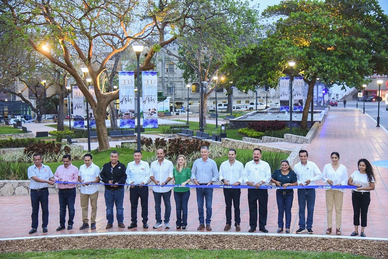 Tampico, Tamaulipas.-Mediante una inversión aproximada a 1.8 millones de pesos, el Presidente municipal Chucho Nader inauguró la reconfiguración de la Plaza de las Artes, uno de los espacios recreativos más antiguos y emblemáticos de la ciudad.