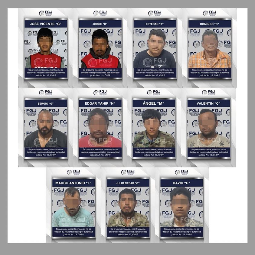 En el operativo se logró la detención de Esteban “Z”, Sergio “G”, Julio César “C”, Ángel “M”, Marco Antonio “L”, Edgar Yahir “H”, Valentín “C”, David “G”, Domingo “R”, y un menor de edad, de quien por Ley se reservan sus generales, además, en la misma carretera a la altura de Laguna Madre, también fueron detenidos Jorge “O” y José Vicente “G”.