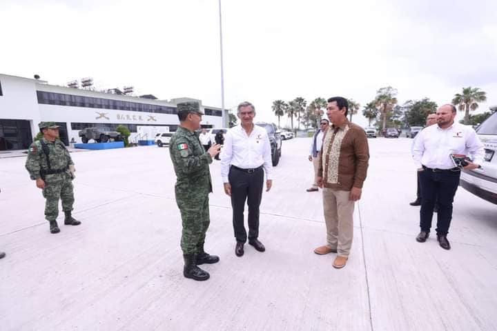 Matamoros, Tamaulipas.-El Gobernador Américo Villarreal Anaya llegando a la ciudad de Matamoros, acompañado por el secretario de gobierno Héctor Joel Villegas para presidir la Mesa De Seguridad, donde dará seguimiento a las tareas y estrategias de Seguridad.