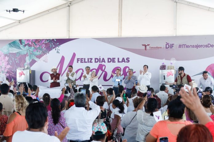 Desde este municipio, el gobernador y la presidenta del DIF Tamaulipas hicieron extensiva la felicitación a todas las madres de familia de la entidad.