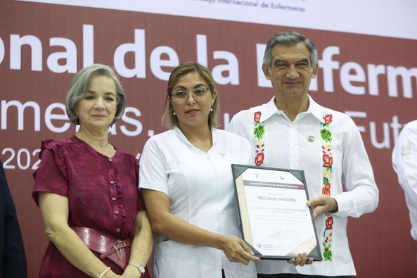 Durante este evento, el mandatario estatal hizo un reconocimiento a la enfermera Irma Barragán Alvarado, quien fue designada como subsecretaria de Enfermería y también destacó que dos enfermeras han sido nombradas subdirectora del Hospital Infantil de Tamaulipas y directora de un Centro de Salud en el municipio de Padilla; Julissa Machuca y María Elena Escobar respectivamente.