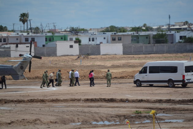 Aunque la funcionaria no estuvo presente durante la visita que el presidente Andrés Manuel López Obrador realizó el domingo a esta frontera, Canturosas, dijo haber estado al pendiente de esta visita de supervisión de los trabajos de construcción de la Anam y del Cuartel Militar.