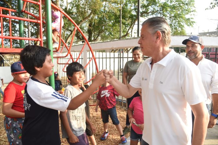 Tampico, Tamaulipas.-En beneficio de los vecinos de la colonia pescadores, el Presidente municipal Chucho Nader entregó este día la rehabilitación integral de uno de los parques recreativos del sector ubicado en la margen de la laguna del chairel.