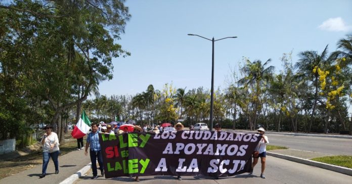 Se concentraron a la altura de la Mega Rueda de la Fortuna, en el Boulevard Petimetral desde las 10:30 horas y portando pancartas que decían: La Ley es la Ley, los Ciudadanos apoyamos a la SCJN a las 10:40 horas empezaron a caminar por la mencionada arteria hasta la plaza de Armas, sitio al que llegaron a las 11:20 horas.
