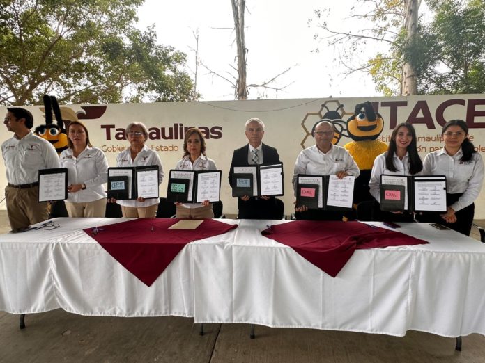 Ciudad Victoria, Tamaulipas.–La Secretaría de Educación, por medio del Instituto Tamaulipeco de Capacitación para el Empleo, reitera su compromiso con el Gobierno del Estado, de hacer alianzas de manera transversal, por lo que firmó un convenio de colaboración con la Universidad La Salle Victoria (ULSA), con el objetivo de que sus estudiantes tengan un espacio para realizar su servicio social, prácticas profesionales e integrarse al Modelo Dual que se implementa en el instituto.
