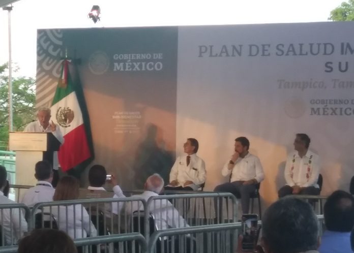 El mandatario Nacional estuvo acompañado también por el secretario de salud de Tamaulipas,  Vicente Joel Hernández, el director de Canseco Joaquín Juárez Durán, entre otras personalidades.