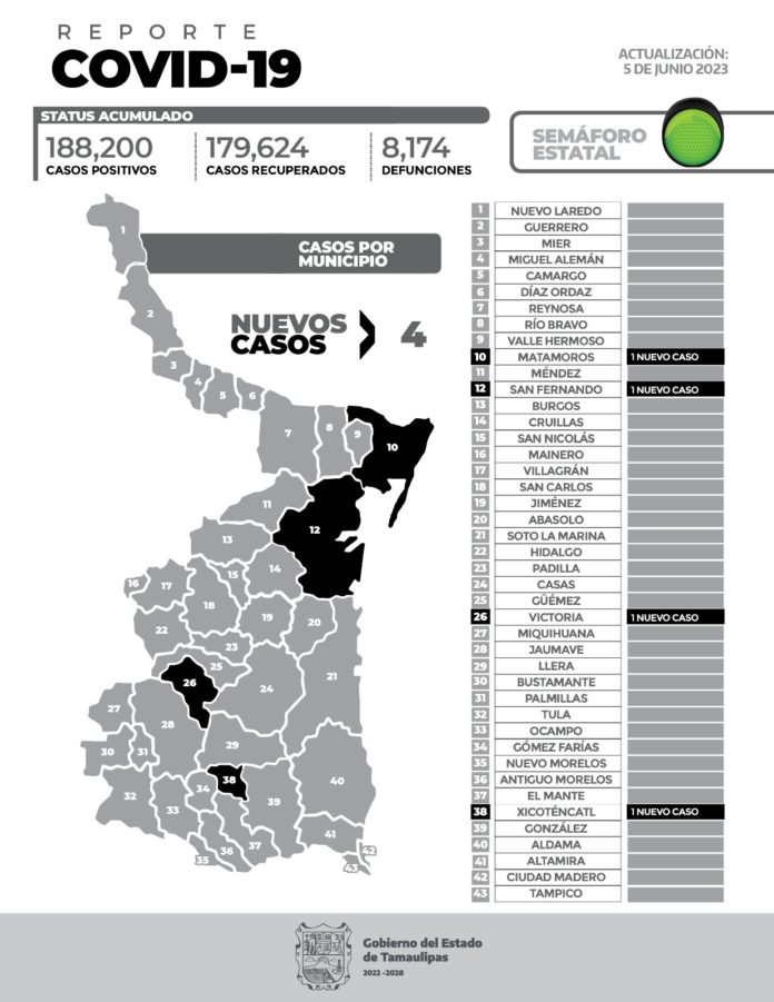 A la fecha en Tamaulipas se han registrado 188 mil 200casos desde el inicio de la pandemia.