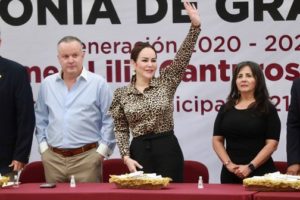 Fue la alcaldesa Carmen Lilia Canturosas quien se dirigió al pódium para refrendar a los estudiantes recién graduados, su compromiso por seguir apoyando a la educación y al esfuerzo de todos los estudiantes que le dedican parte de su vida para su preparación académica.