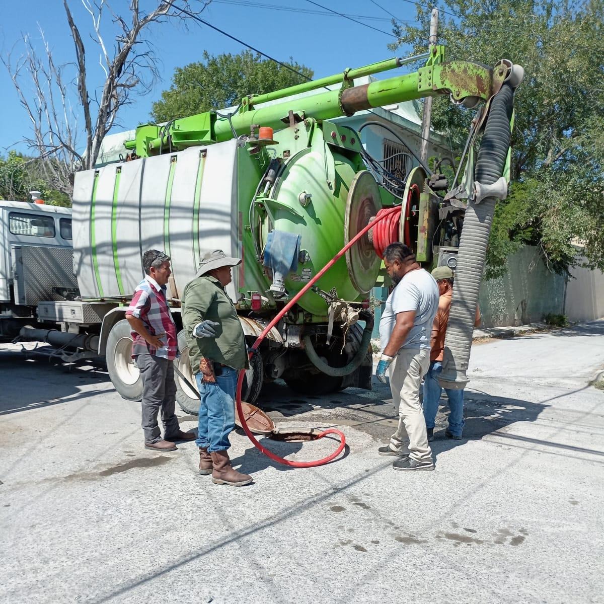 Mientras que en la colonia Rodríguez, de descarga sanitaria en el callejón Colima, entre calle Tamaulipas y Sinaloa, logrando bajar niveles de aguas residuales en la red general, para evitar derrames en registros aledaños en este sector.