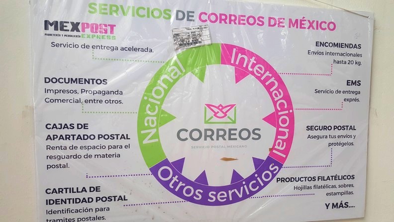 “Así como los servicios adicionales para complementar el envió de mensajería o paquetería que son hojillas filatélicas, sobres, y estampillas, así como Registrado, Acuse de Recibo, Reembolso, Seguro Postal, Giro Postal, Cajas de Apartado, Llaves de Caja de Apartado, Cartilla de Identidad Postal, y Almacenaje”, señaló personal de esa dependencia.