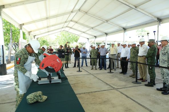 Junto a mandos militares y representantes de dependencias estatales y federales, el mandatario tamaulipeco recorrió los cuatro módulos en donde se lleva a cabo la destrucción de armamento y fue informado sobre las acciones de campo que ha realizado, tanto el Ejército como la Guardia Nacional para el aseguramiento y decomiso de armas y municiones.
