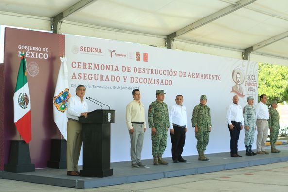 -Asiste gobernador de Tamaulipas a ceremonia de destrucción de armamento asegurado.