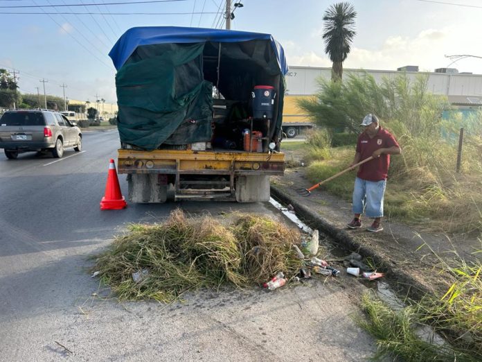 Con el objetivo de lograr un tráfico vehicular fluido y seguro, y que los peatones puedan desplazarse también con seguridad, los trabajadores del Municipio efectuaron el chapoleo de cordones y banquetas y el retiro de hierba, llantas, escombro y basura.