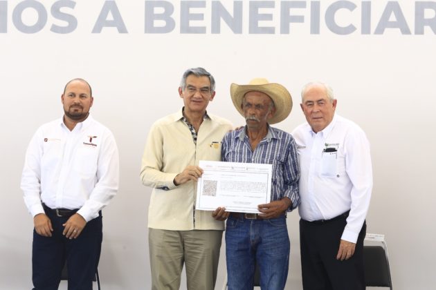 Las autoridades estatales y federales hicieron una entrega simbólica del insumo a los pequeños productores Ramón Pérez Rodríguez, José Guevara Marín, Martín Borrego Hernández, Ismael Borrego Padilla y Vidal Borrego.