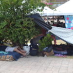 Los migrantes se ubican desde hace casi un mes en la plaza Morelos, a un lado del hospital del Imss, en donde conviven en condiciones de hacinamiento muy elevadas, al estar expuestos a intenso calor, enfermedades y una evidente desatención.