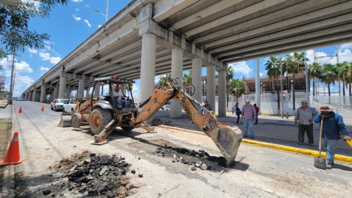 Por instrucciones del Alcalde Carlos Peña Ortiz, y en coordinación con otras dependencias, la Comisión Municipal de Agua Potable y Alcantarillado de Reynosa, llevó a cabo la reparación de una fuga de agua potable en el Bulevar Miguel Hidalgo, a la altura de la colonia Narciso Mendoza.