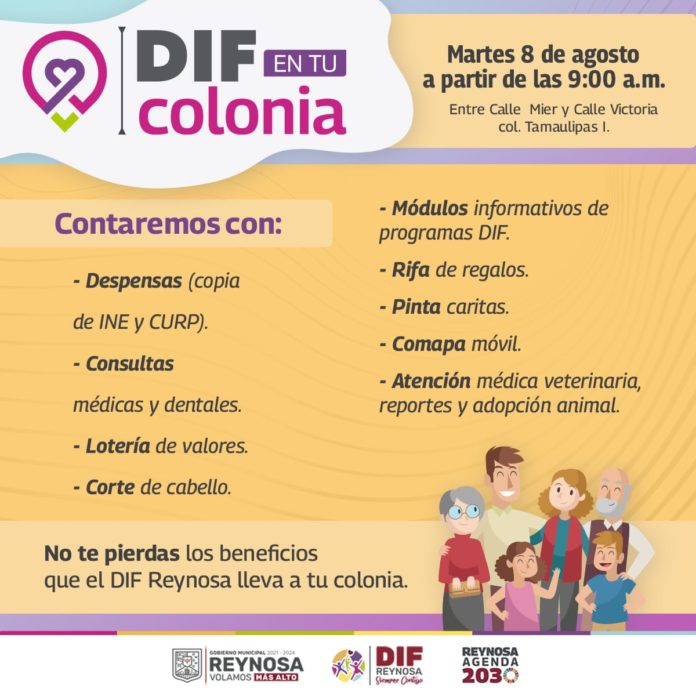 El Sistema DIF Reynosa, que encabeza Carlos Luis Peña Garza, llevará los programas y servicios gratuitos a las familias de la colonia Tamaulipas I.