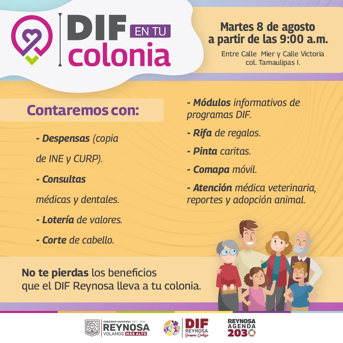 El evento se llevará a cabo este próximo martes 8 de agosto a partir de las 9:00 de la mañana, entre Calle Mier y Calle Victoria, en la colonia Tamaulipas I.