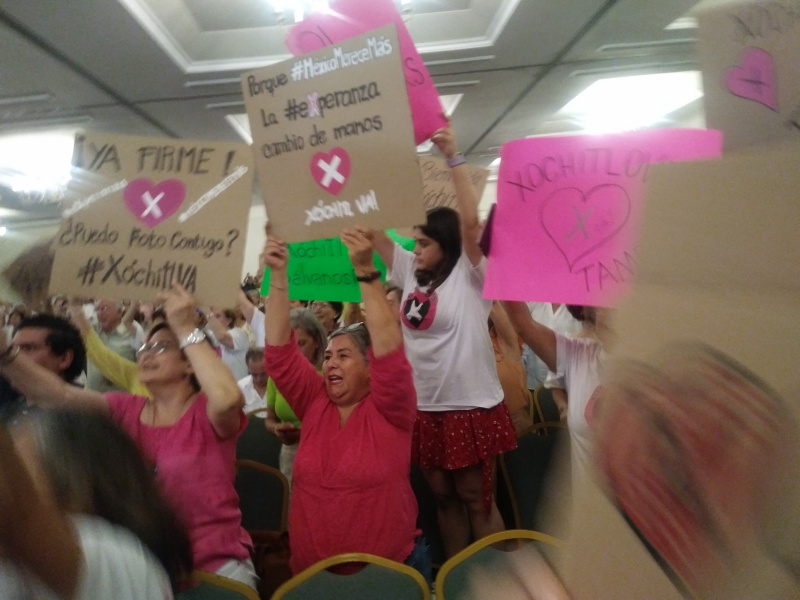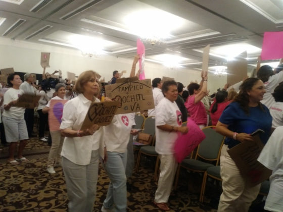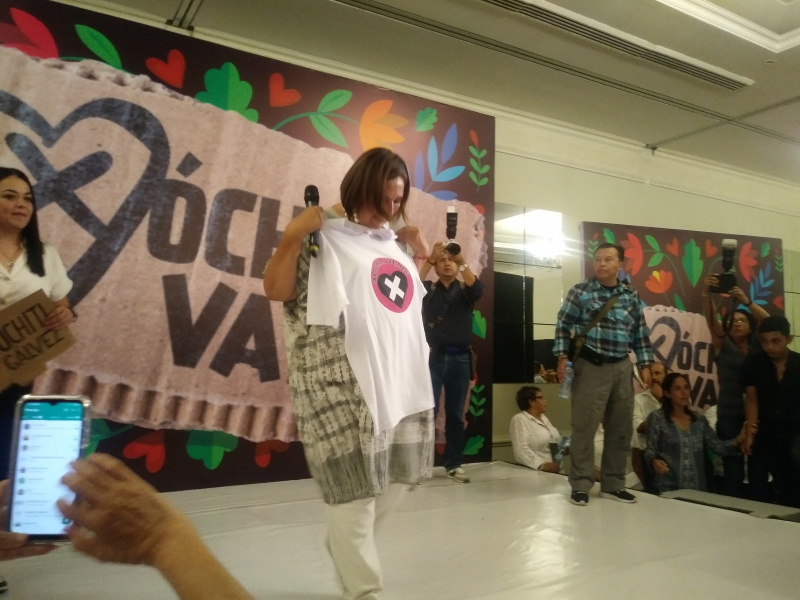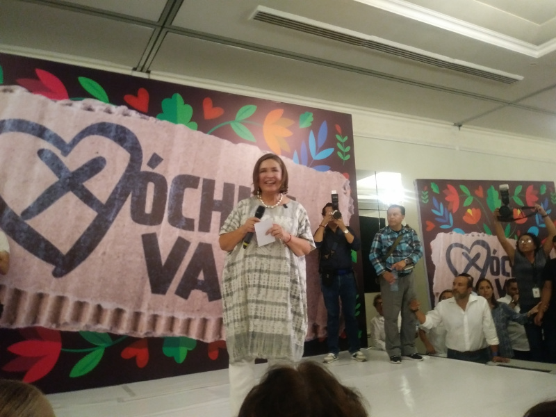 A sus simpatizantes que le escribieron distintas frases en un simple cartón, y algunas vestidas con playeras que traían la leyenda, “Es tiempo de las Mujeres”, expresó: “ Yo solo quería decirle al presidente que con su política de abrazos y no balazos estamos ensangrentando al país, es un fracaso, 162 mil personas asesinadas y miles de desaparecidos es el resultado y le quiero decir que aquí hay una mujer que tiene los ovarios para aplicar la ley, porque la ley es la ley”.