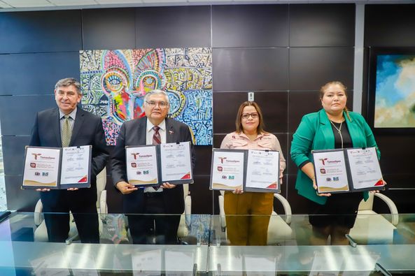 Ciudad Victoria, Tamaulipas.- En un paso significativo para la formación académica y profesional de los estudiantes, la secretaria de Bienestar Social de Tamaulipas, Verónica Adriana Aguirre de Los Santos, el secretario Administrativo de la Universidad Politécnica de Victoria, Raúl Villanueva Niño y el director de Vinculación, Othón Cano Garza, han rubricado un convenio interinstitucional.