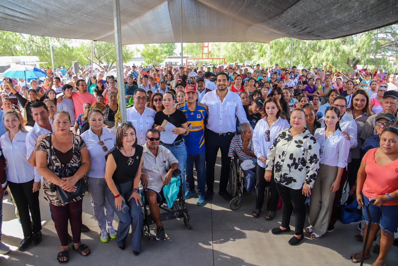 Acompañado por la Secretaria de Desarrollo Social, Hidilberta Velázquez Mendoza, y el Secretario de Desarrollo Económico y del Empleo, Mauricio Treviño Garza, miembros del Cabildo, funcionarios municipales, del sistema DIF y COMAPA, en la Audiencia celebrada en la plaza pública de la colonia, el Presidente Municipal participó en la supervisión de los servicios médicos, dentales, de optometría, bolsa de trabajo, corte de pelo y atención veterinaria, así como entrega de lentes, aparatos ortopédicos y apoyos alimentarios.