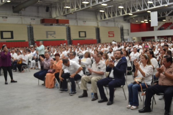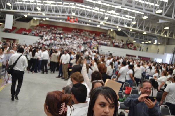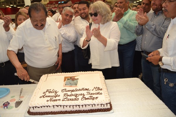Nuevo Laredo, Tamaulipas.-Ante un lleno total del Polyforum el secretario general de la sección 30 del Sindicato Nacional de Trabajadores de la Educación (Snte), Arnulfo Rodríguez Treviño, fue homenajeado por miles de maestros que acudieron a esta cita, en una muestra de apoyo incondicional, y aunque negó que busque un cargo político para las elecciones del próximo año, algunos mentores que acudieron a este festejo, lo ubican en el Senado, mientras otros dicen que buscaría la presidencia municipal de Nuevo Laredo.