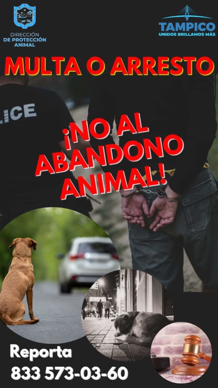 Tampico, Tamaulipas.-Más de 7 mil pesos en sanciones administrativas y arresto hasta por 48 horas se aplicarán a personas que abandonan o maltraten a sus mascotas, luego de que de enero a la fecha van 70 animales que han dejado en esa situación, principalmente perros, advirtió Ángel Morales Cisneros, Director de Protección Animal de Tampico.