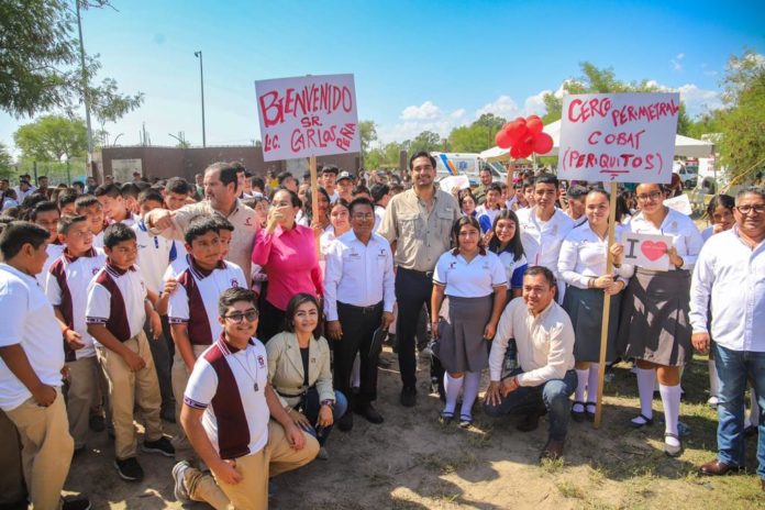 El Presidente Municipal, Carlos Peña Ortiz, se reunió con padres de familia y estudiantes del ejido “Periquitos”, ahí entregó tarjetas del Programa de Becas Más Grande en la Historia de Reynosa, que está dispersando 152 Millones de Pesos para apoyar la educación de alumnos desde kinder hasta Universidad.