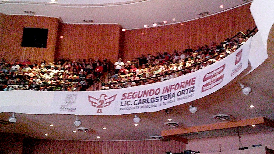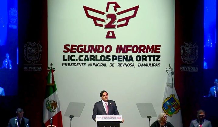 Reynosa, Tamaulipas.-El Presidente Municipal, Carlos Víctor Peña Ortiz, rindió su Segundo Informe de Gobierno Municipal, en donde dio a conocer importantes avances en educación, materia de obra pública, y desarrollo económico para el funcionamiento de la ciudad de Reynosa.
