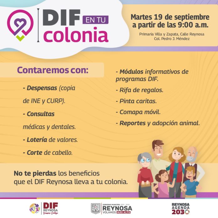DIF Reynosa invita a las familias del sector y aledaños a acudir para aprovechar todos los programas y servicios, así como conocer los programas asistenciales.